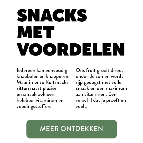 Onze cultsnacks bevatten alleen het beste van de natuur. 100% fruit. 100% smaak. Voor een goed gevoel.