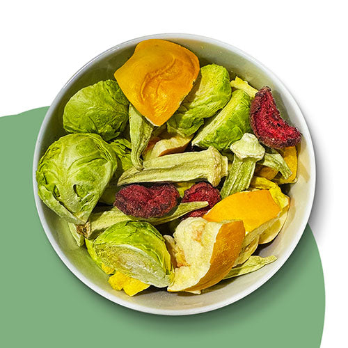 Wil je gezond eten, maar er toch van genieten? Dan is onze groentemix van Kultsnack precies wat je zoekt! Tomaten, paprika's, spruitjes, okra en bieten – voorzichtig gevriesdroogd, extra knapperig en licht als chips, maar 100% natuurlijk. Geen vet, geen toevoegingen, geen gedoe – gewoon pure plantenkracht. De speciale droogmethode behoudt niet alleen de smaak, maar verhoogt ook de concentratie vitaminen en voedingsstoffen door water te verwijderen. Zo levert elke handvol een royale portie energie, vitaminen en een levendige kleur. Of je hem nu puur eet, in salades, dips, soepen of op brood – deze mix is gezond, veelzijdig en gewoonweg heerlijk.