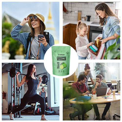 Een frisse boost die je meteen aan de zomer doet denken – dat is waar de gevriesdroogde limoenschijfjes van Kultsnack voor staan. Fris en aromatisch, ze geven een aangename frisheid aan je glas en zijn perfect voor water, cocktails of mocktails. Maak moeiteloos en in een handomdraai heerlijk aromatisch water. Natuurlijk 100% natuurlijk, zonder toevoegingen – voor iedereen die houdt van verfrissing en authentieke smaken.