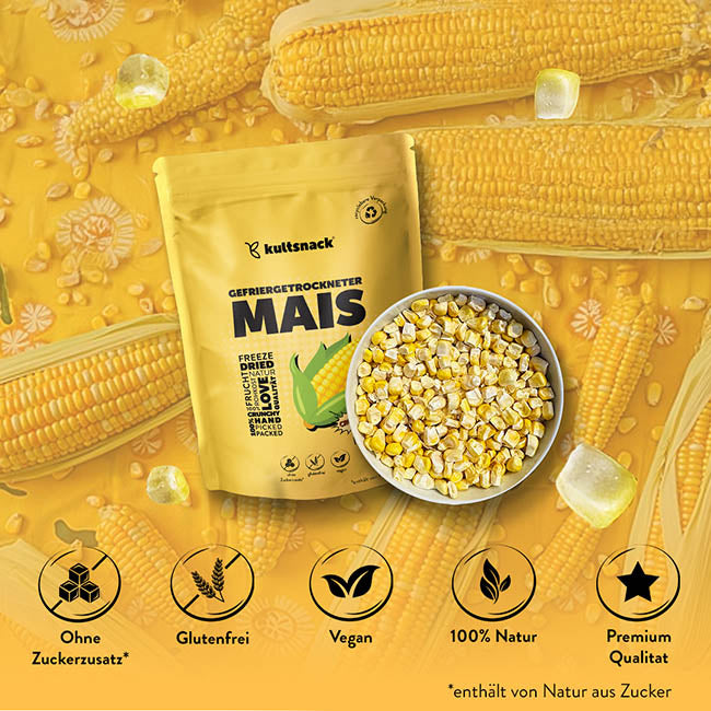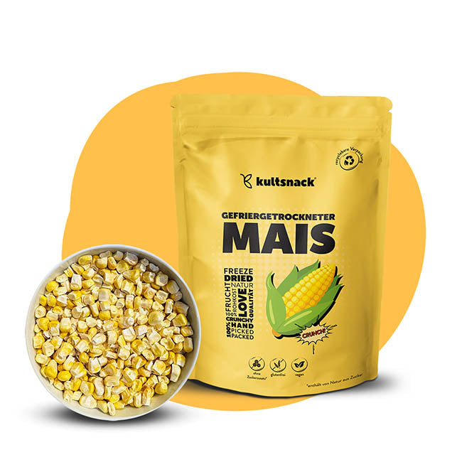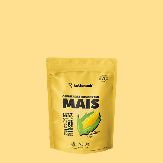 Als je van knapperige maïs houdt, zul je onze gevriesdroogde maïs van Kultsnack zeker geweldig vinden! Hij smaakt zo aromatisch alsof hij net vers van het veld komt – alleen dan knapperig, luchtig en vol natuurlijke vitaminen. Of het nu als kleine snack tussendoor is, als topping op je salade, in rijstgerechten of in romige dips – het geeft elk gerecht net dat beetje extra. 100% natuur, zonder toevoegingen, suiker of genetische modificatie – gewoon pure maïs, verder niets